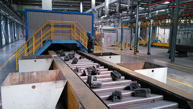 2、鑄件、塊狀等專用鱗板輸送機:是我公司針對輸送大塊和尖銳的物料,開發設計的。該系列輸送機具有結構簡單、運行可靠、使用壽命長,運送單個物料(件)的重量可達70-120kg,輸送機長度可達40-80米且允許25°傾角輸送。