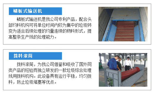 送料機構作為生活垃圾處理線的第一道工序在整條處理線中具有至關重要的作用,它決定了整條處理線的處理速度和處理量。為了保證生活垃圾處理線的平穩可靠運行,為這一環節,我們設計了特殊送料機構——鱗板式輸送機和撥料滾筒。